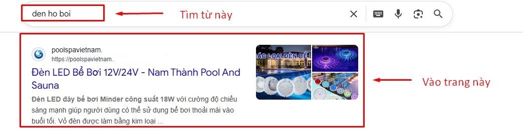 - Bước 2: Tìm từ trên xuống dưới sẽ thấy trang https://poolspavietnam.***.***/***-be-boi/ thì bấm vào đó