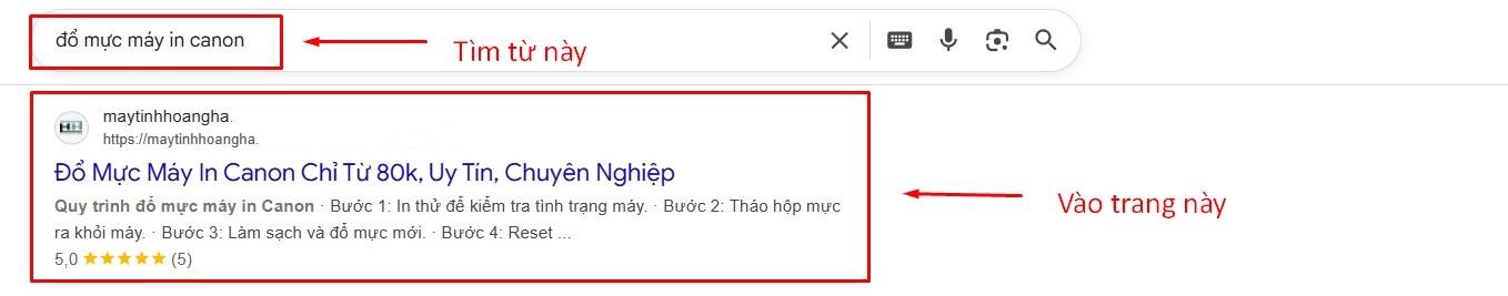 - Bước 2: Tìm từ trên xuống dưới sẽ thấy trang https://maytinhhoangha.***/***-***-***-***-canon/ thì bấm vào đó
