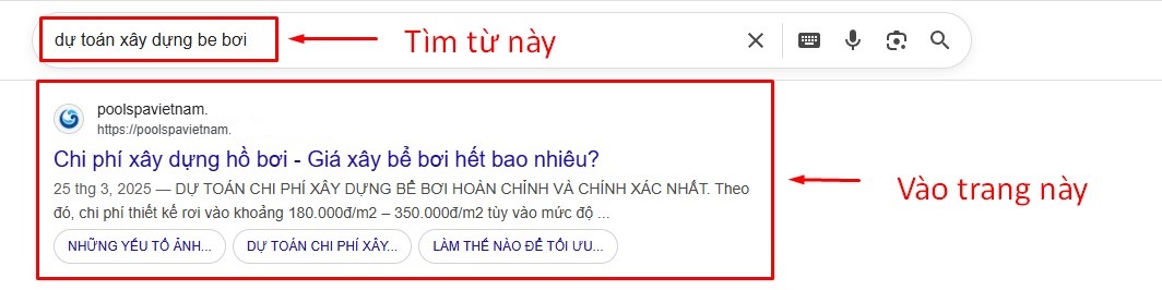 - Bước 2: Tìm từ trên xuống dưới sẽ thấy trang https://poolspavietnam.***/***-***-***-***-be-boi/ thì bấm vào đó