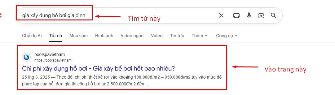 - Bước 2: Tìm từ trên xuống dưới sẽ thấy trang https://poolspavietnam.***.***/***-***-***-***-be-boi/ thì bấm vào đó