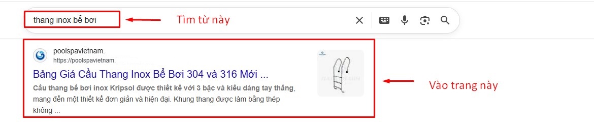 - Bước 2: Tìm từ trên xuống dưới sẽ thấy trang https://poolspavietnam.***.vn/***-***-***-inox/ thì bấm vào đó